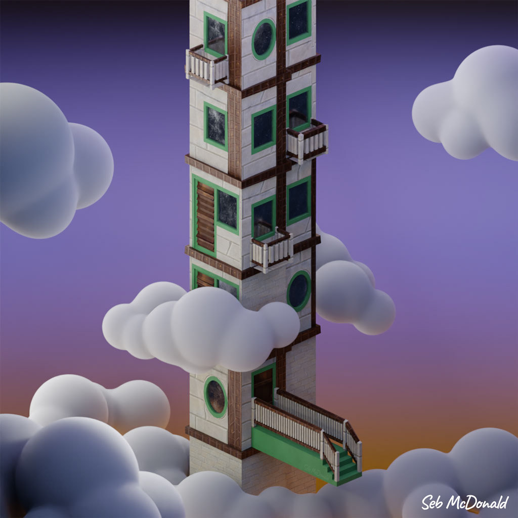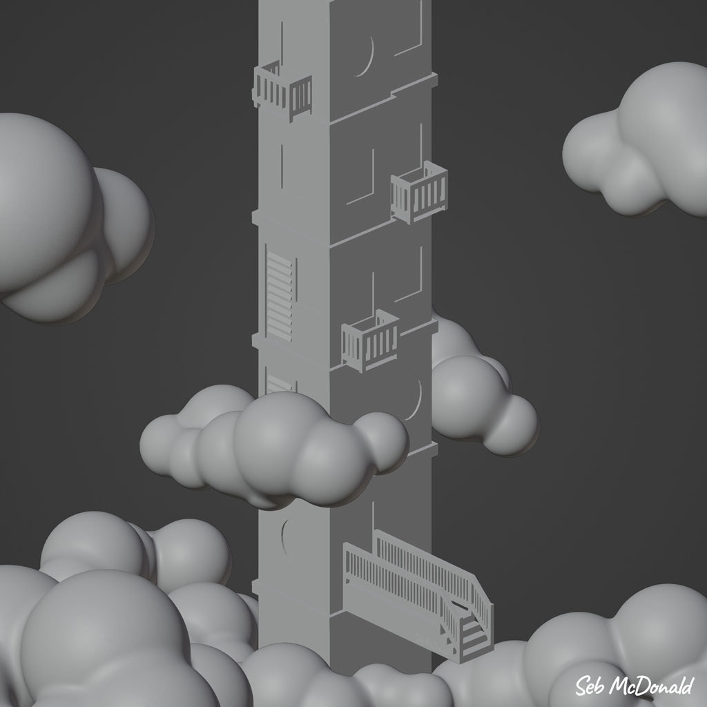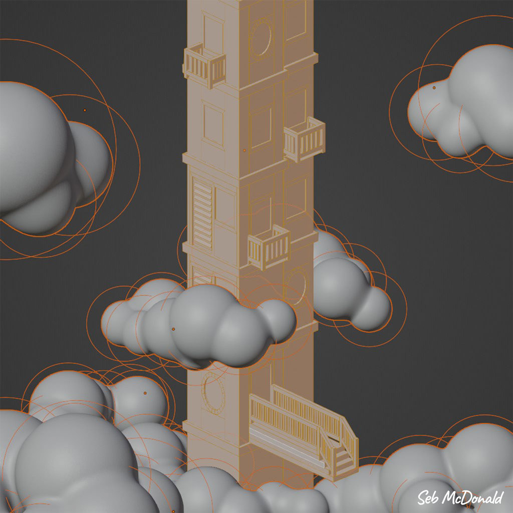Modelled and textured in Blender. The clouds were made using metaballs combined with a volume shader.